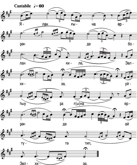 Зөлхизәне һис йоҡо алмаған. Таң беленгәс, һыйыр һауырға сығыу һылтауы менән сыҡҡан да йыр тауышы килгән яҡҡа барып, ҡамыш, тал араларынан эҙләп таба алмағас, ултырып илаған-илаған да кире ҡайтҡан.